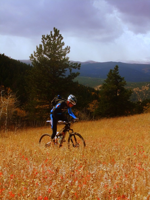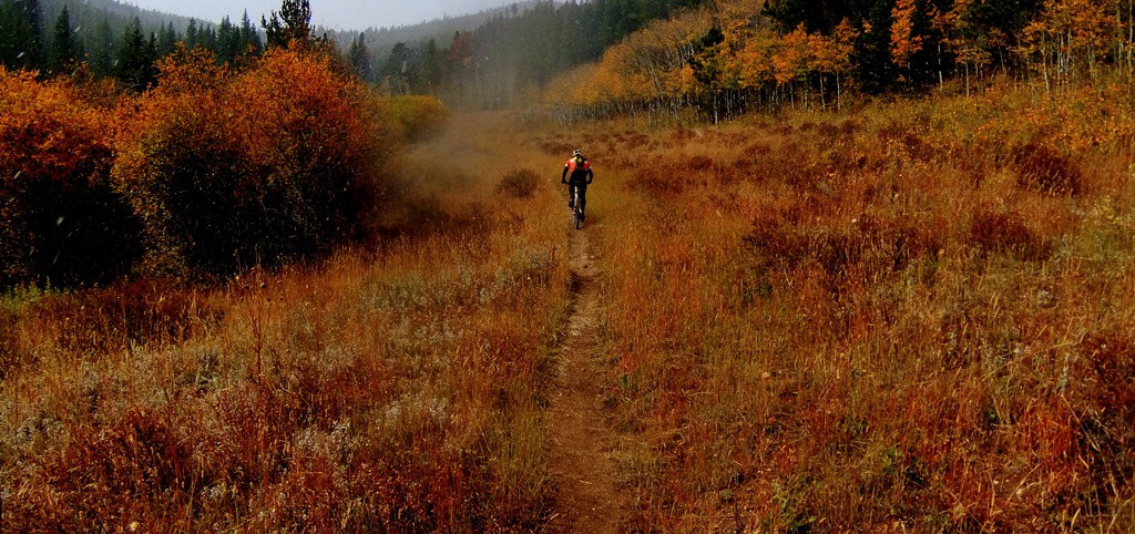 Autumn in Colorado is a short season. In the two and a half weeks I have been here, the temperature has dropped from a 30C average to about 15C. The high peaks have been dusted with two days of snow, and today icy rain was falling in Boulder. I took the opportunity to ride in Nederland on Saturday, perhaps the last weekend of the year that above tree-line riding will be accessible. the glorious combination of sunshine and snow blowing off the high peaks was a perfect compliment to the golden carpet of aspen leaves on the singletrack. Every photo taken was filled with bright powerful colours, seemingly a last display before the blanket whiteness of winter.