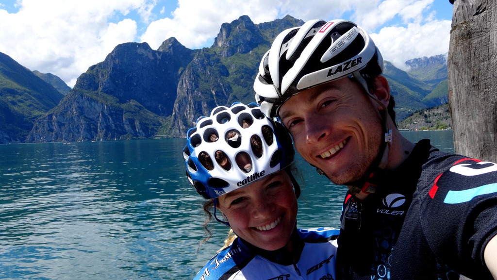 With the sun finally fighting off the clouds, we got on the bikes and improved the day vastly. With a couple thunderclouds shadowing us, we cruised down the lake. Christa’s knee was still feeling sore, so she decided to take it easy, and gave me a free reign to blast up a couple little climbs through the olive groves of Arco. The roads and trails go off in every direction, and I soon found a dirt road to take me up to a vantage point. Although a little more relaxed than our grand ideas of putting in huge miles in the sunshine, it was a great first day by the water, and slowed the pace of the holiday; less worrying about where we were going, and a lot more actual doing.